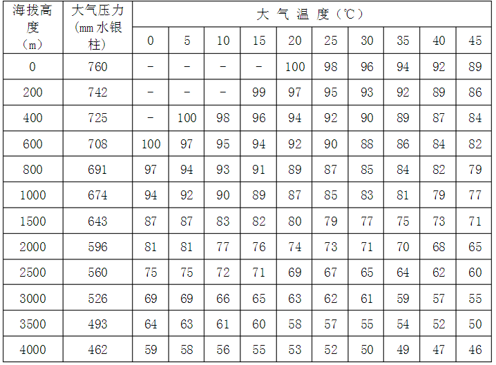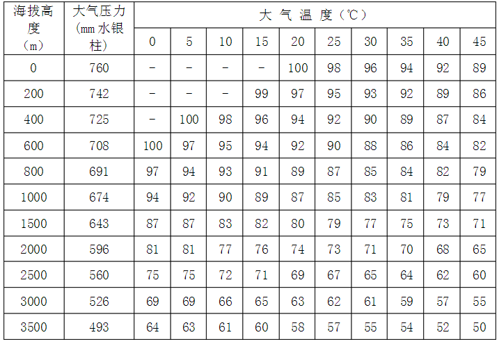2、如果外界氣壓、氣溫、濕度等上述標(biāo)準(zhǔn)情況下,則應(yīng)按下列附表中所列的修正系數(shù)加以修正,即實(shí)際功率應(yīng)等于標(biāo)準(zhǔn)乘以修正系數(shù)c。下列兩表分別為50%及100%相對濕度下各種氣、氣溫情況的修正系數(shù)c如溫度為其他數(shù)值時(shí),可利用插入法根據(jù)此二表計(jì)算出相應(yīng)的修正系數(shù)。